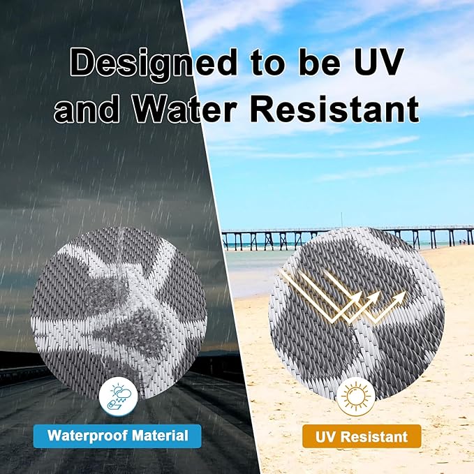 - Lightweight & Portable Patio Rugs: The lightweight foldable construction enables ultra-portability, allowing our outdoor area rug to tag along on all your adventures, from campouts in the wilderness to lawn parties in the park, without being a burden.