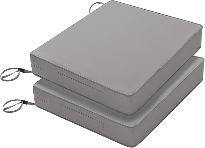 Favoyard Patio Chair Cushions 18.5 x 16 x 3 Inch Waterproof Outdoor Seat Cushions for Patio Furniture 3-Year Color Fastness Garden Sofa Couch Chair Pads with Handle & Adjustable Straps Set of 2, Grey