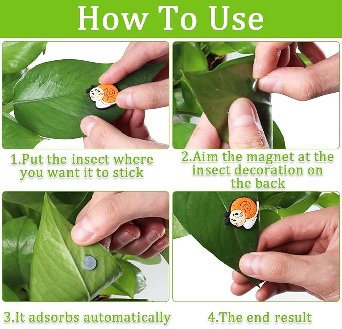 - FUN PLANT DECORATIONS: Package contains 6 small magnet plant decorations (1 small bee, 1 small butterfly, 1 caterpillar, 1 small ladybug, 1 small ant, 1 small snail). These plant decorations give your plants personality and keep them company with magnet bugs, making them the perfect plant decoration accessory.
