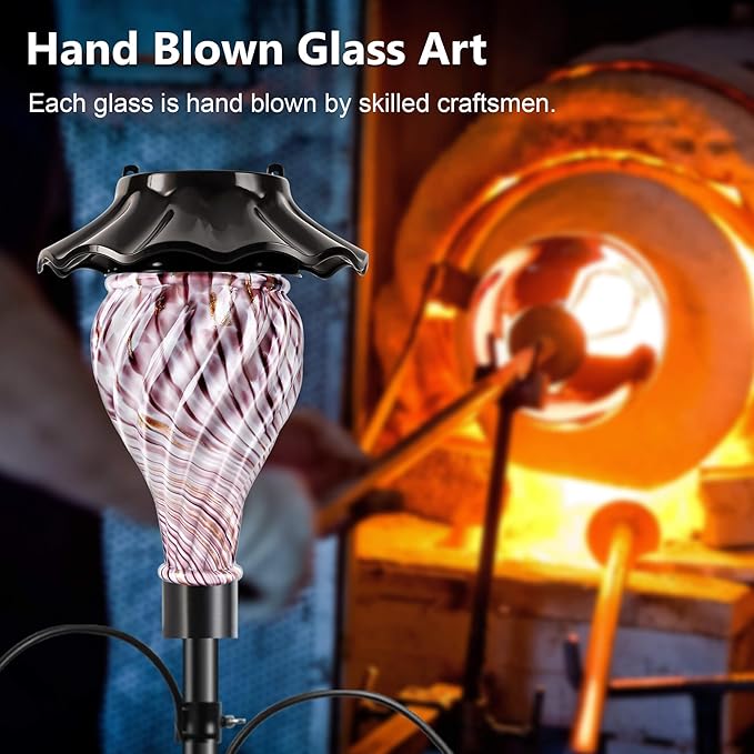 - EXQUISITE HAND BLOWN GLASS TOP: The spirally crafted hand-blown glass top combines aesthetics and functionality to create a unique, soft, tranquil atmosphere. The refreshing color adds to the ambiance and enhances your yard's appeal