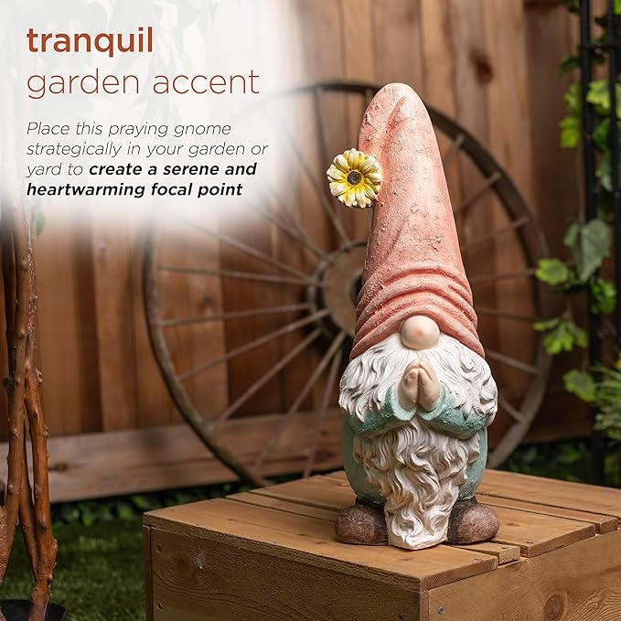 - PRAYING GNOME GARDEN STATUE: Adds a positive and inviting ambiance to any indoor or outdoor setting such as gardens, entryways, patios, backyards, pathways, decks, and more