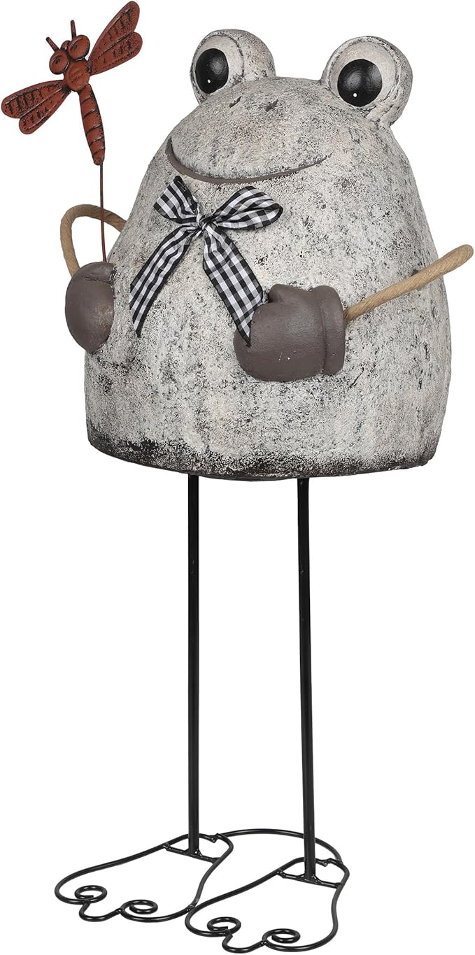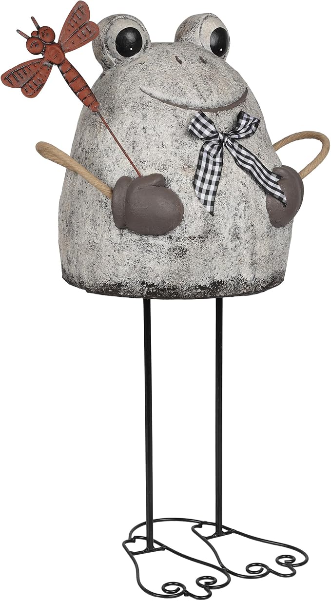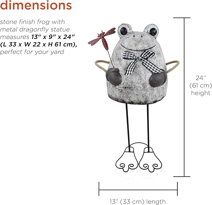 Alpine Corporation MCC862 Indoor/Outdoor Frog with Dragonfly Garden Statue, Stone Finish Frog Statue for Yard, 24" H, Silver
