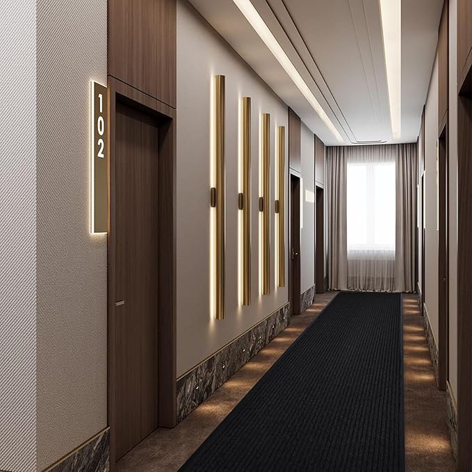 - 【High Quality Stain Resistant Runner Rug】The jet black door mats are made of high quality polyester and rubber. The groove design increase friction, easy to scrape sand off the soles. Effectively absorb oil without splashing. It is a great choice for trapping dirt & moisture from shoes & boots in the toughest applications; Protect your floors from snow, salt, rain and other outdoor debris.