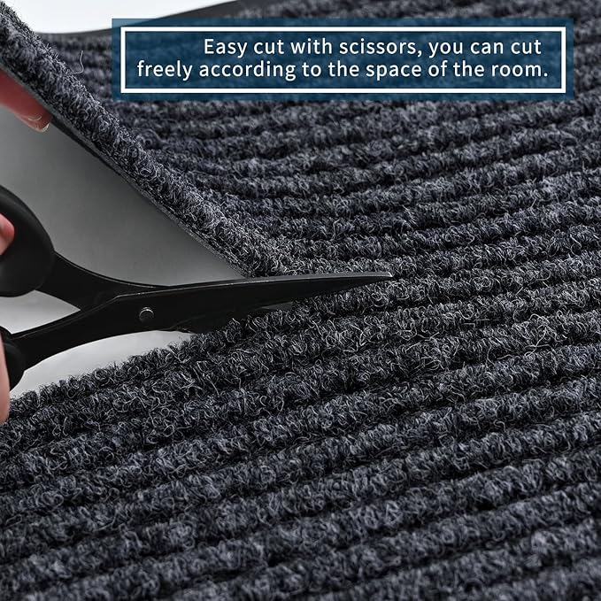 - 【High Quality Stain Resistant Runner Rug】The grey door mats are made of high quality polyester and rubber. The groove design increase friction, easy to scrape sand off the soles. Effectively absorb oil without splashing. It is a great choice for trapping dirt & moisture from shoes & boots in the toughest applications; Protect your floors from snow, salt, rain and other outdoor debris.