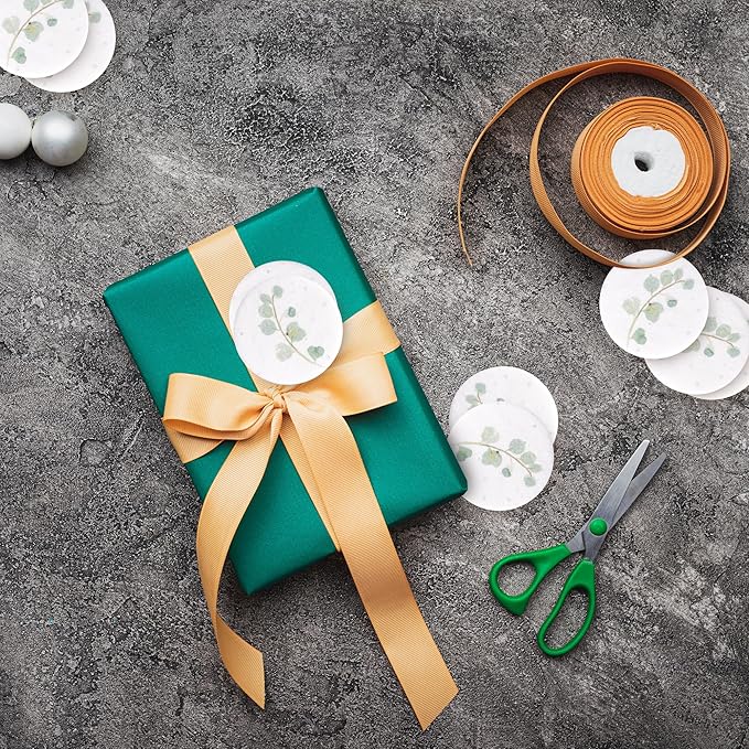20pcs Thank You Tags Seed Paper – Plantable Wildflower Packets for Weddings, Gifts, & Life Events (20 Round Eucalyptus)