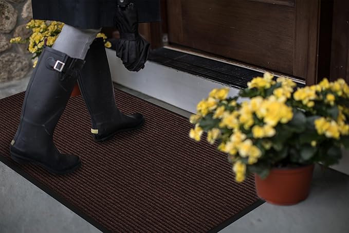 fani 2 PCS Heavy Duty Large Outdoor Indoor Entrance Doormat Brown Waterproof Low Profile Entrance Rug Front Door Mat Patio Anti-Skid Rubber Back, 31x47 inch (Brown)