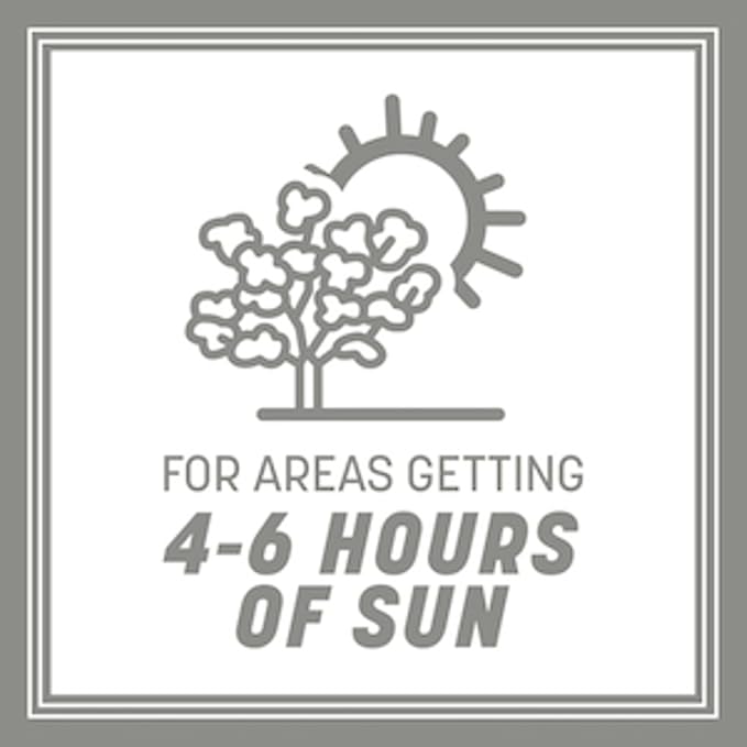 - Performs well in areas that receive 4 to 6 hours of sun daily