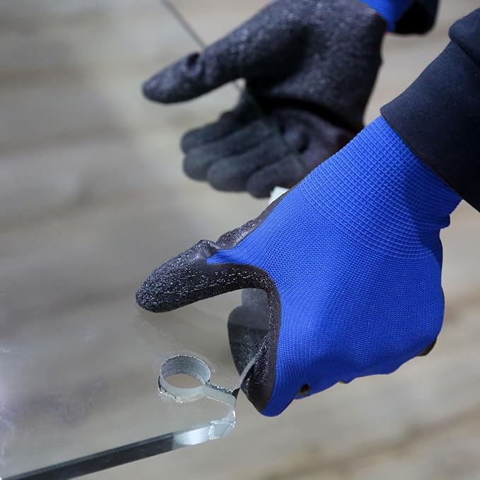 - EXTURED COATING—Latex/rubber palm and finger crinkle coating, provides Anti-slip, Cut and Puncture resistant and repels light liquids