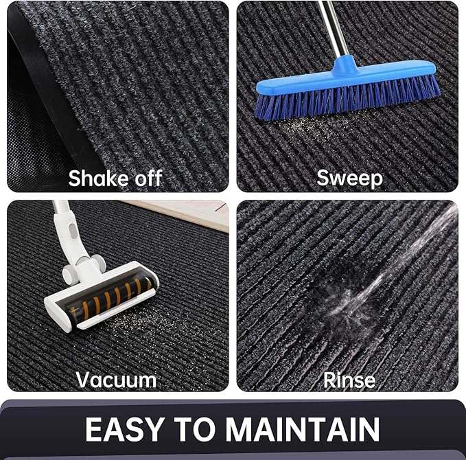 - EASY TO CLEAN: Simply shake, sweep, or vacuum the entrance floor mats to remove dust and debris. For a deeper clean, rinse with a hose and air dryβfront door mats will quickly returns to its original condition.