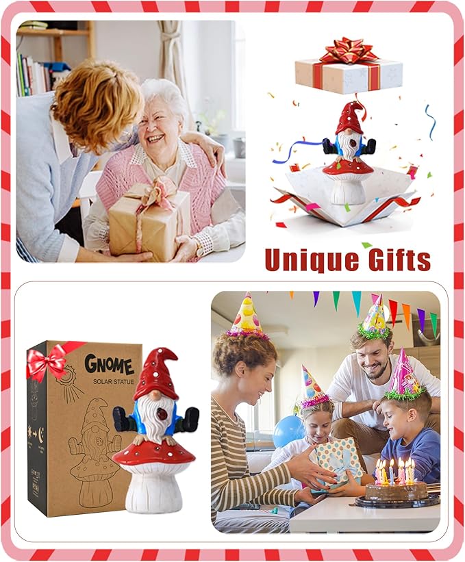 Nacome Solar Gnome Garden Statue for Decor: Outdoor Sculpture with Lights for Outside Ornament Yard Art Lawn Porch Patio Balcony - Birthday Gifts for Women Mom