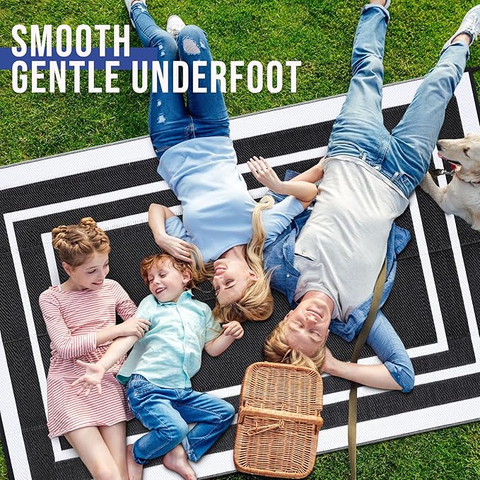 - Reversible & Versatile: This patio rug is designed to instantly transform your space with a simple flip, making it perfect for balconies, patios, picnics, or even kids' play areas. Its dual-sided design functions perfectly as an indoor outdoor rug, while its portability makes it an excellent choice for a camping rug or outdoor activities.