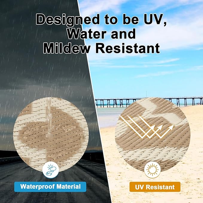 - Lightweight & Portable Patio Rugs: The lightweight foldable construction enables ultra-portability, allowing our outdoor area rug to tag along on all your adventures, from campouts in the wilderness to lawn parties in the park, without being a burden.
