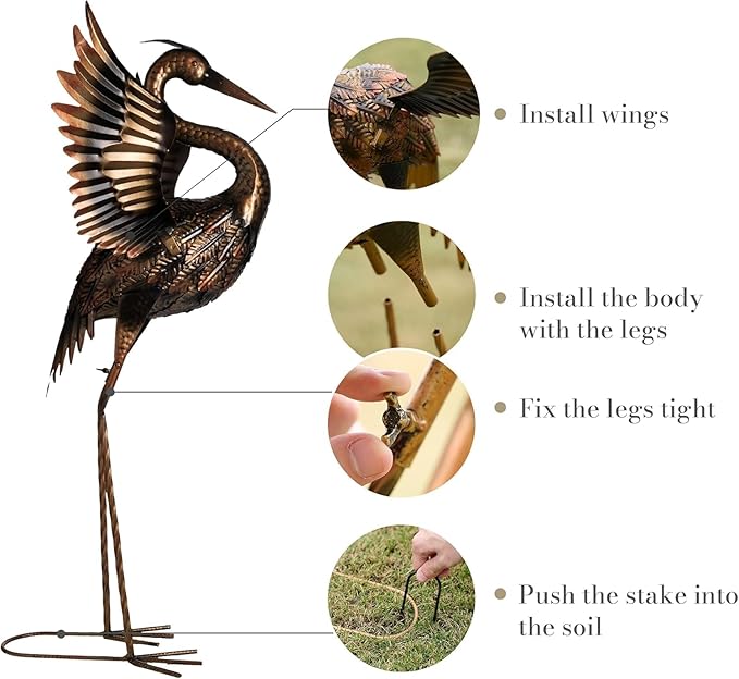 - 【High quality】Made from sturdy iron and sprayed with clear coat to maintain its vibrant color, ensuring it does not easily fade.The package includes 4 U-shaped stakes that keep the statue stable even in stormy weather