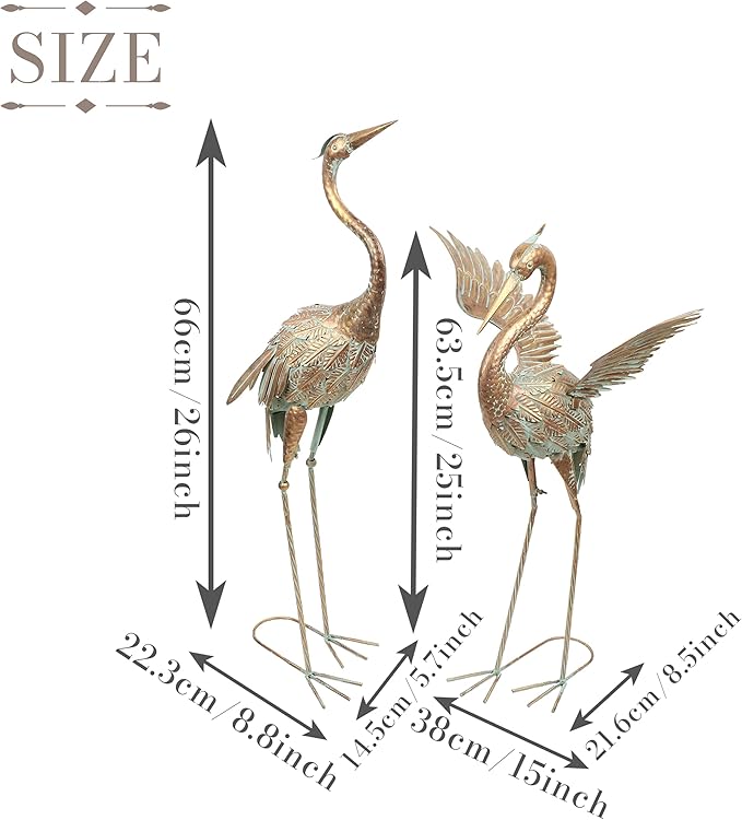 - 【Original Design】These metal crane statues feature a beautiful blue color that glimmer in the sunlight, adding a lovely touch to any decor