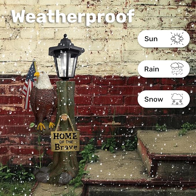 - PATRIOTIC EAGLE DESIGN: This striking eagle statue, with the American flag positioned behind it, symbolizes strength and freedom. A bold addition to your outdoor space, itโs ideal for showcasing your patriotic pride in any garden or patio.