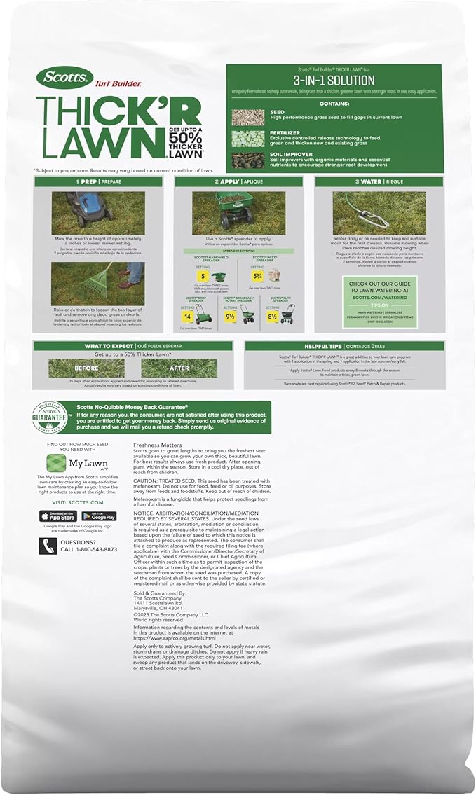 - One 40 lb. bag of Scotts Turf Builder Thick'R Lawn Southern Gold Blend for Tall Fescue Lawns covers 4,000 sq. ft.