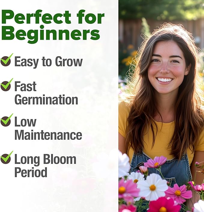 - COSMOS SEEDS FOR PLANTING OUTDOORS – EASY TO GROW: These cosmos flower seeds are perfect for beginners and experienced gardeners alike, known for their simplicity and success. With minimal care, these easy flower seeds to grow reach heights of 3-5 feet, making them an impressive addition to any garden.