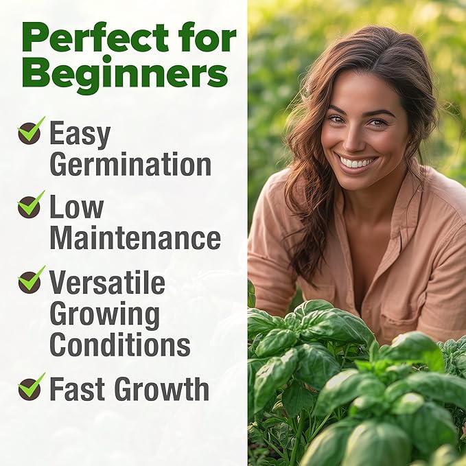 - QUICK GERMINATION AND EASY TO GROW – Our basil seeds for planting are perfect for beginners, featuring a high germination rate in just 5-10 days. Plant these sweet basil seeds indoors or outdoors at 70-85°F and watch them thrive in both garden beds and containers. With fast-growing results, expect a harvestable basil plant in 60-90 days, adding fresh herbs to your kitchen effortlessly. Ideal for those looking to cultivate herb garden seeds with reliable, vigorous growth.