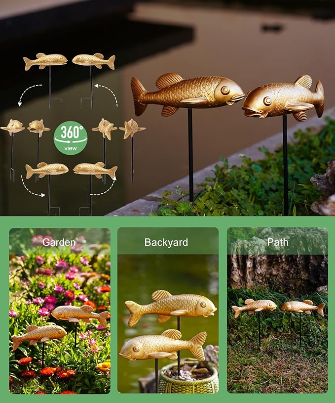 - Symbolic Meaning:Our fish statues represent good luck, prosperity and perseverance. They can inspire positive emotions and add significance to outdoor garden patio pond decorations
