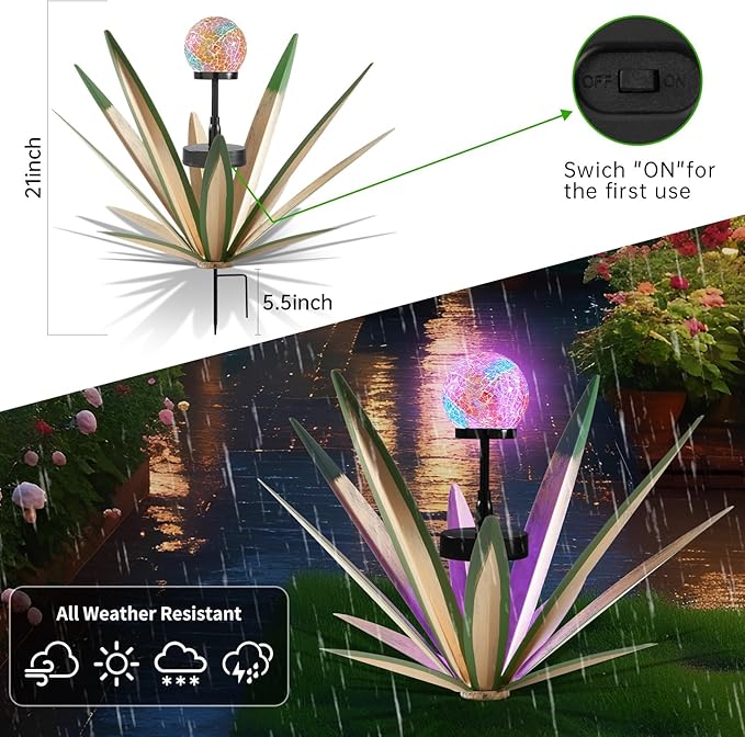 - Solar powered light of agave sculpture can be lit up for 8-10 hours with a full charge