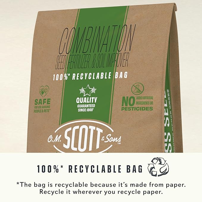 - O.M. Scott & Sons products are packaged in a recyclable paper bag - apply the product to your yard then toss the bag in your curbside recycling bin where available