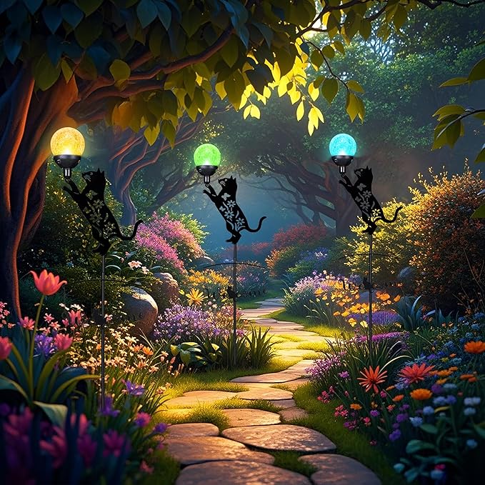 - 【Decorations for all occasions】 The solar cat garden statue are suitable for a range of outdoor settings including garden, patio, yard, porch, flower bed, lawn and pathway; Cats symbolize Elegant, intelligent, independent, among other good meanings. Ideal for for lawns, farmhouses, gardens, courtyards, and backyards.