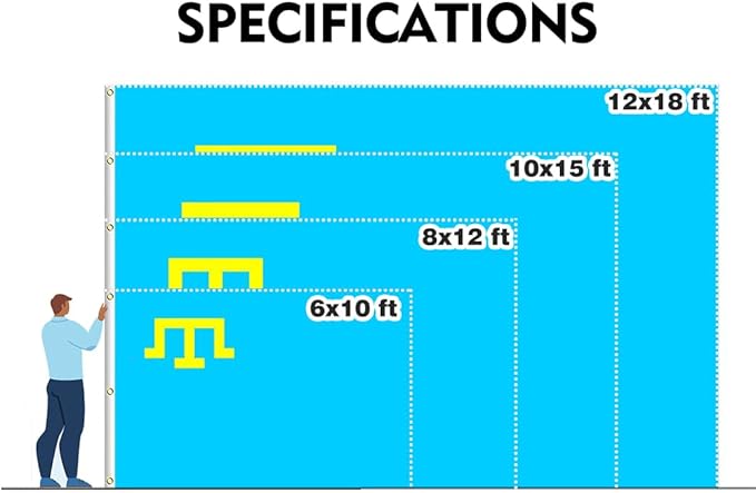 - Material: Polyester. Size: 2x3/3x5/4x6/5x8/6x10/8x12/10x15/12x18 feet